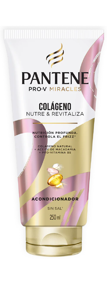 El Acondicionador sin sal Pantene Pro-V Miracles Colágeno Nutre y Revitaliza contiene ingredientes acondicionadores activos que lubrican el cabello para una sensación de suavidad inigualable y potenciando los beneficios de nutrición del shampoo.