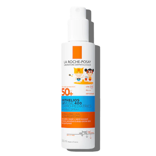Para la piel con tendencia atópica de los niños. Protección contra rayos UVA ultralargos. Ultraresistente. Protector solar para niños en spray.
